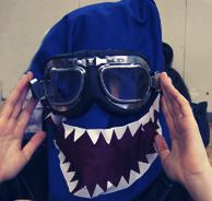 良ちゃんとおそろの布で作った8巻帝人サメ帽子+ゴーグルな写真だけ取り急ぎ載っけておきます。
